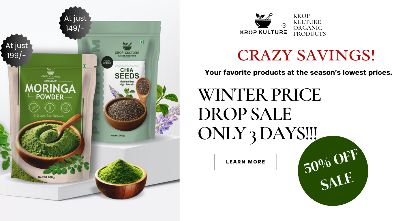 At Krop Kulture, we believe that what you put into your body matters. Our commitment to 100% organic farming practices ensures that every product we grow is free from harmful pesticides and chemicals.